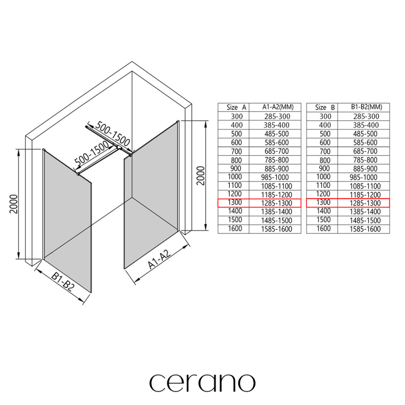 V rámci této série nabízíme širokou škálu rozměrů, abychom uspokojili různé potřeby našich zákazníků. Všechny sprchové kouty, dveře a zástěny značky Cerano jsou plně kompatibilní se sprchovými vaničkami Cerano ve stejných rozměrech, což zajišťuje bezproblémovou instalaci a dokonalé sladění. Sprchový kout lze navíc instalovat flexibilně – buď na odpovídající sprchovou vaničku, nebo přímo na podlahu podle vašich preferencí a možností koupelny.
