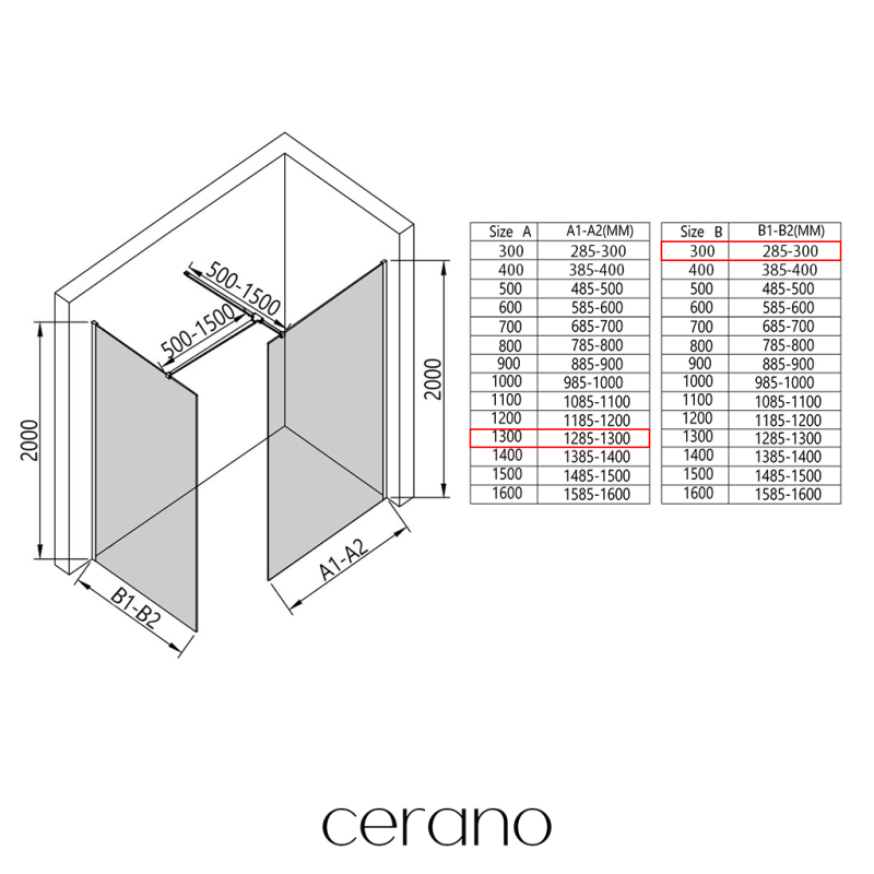 V rámci této série nabízíme širokou škálu rozměrů, abychom uspokojili různé potřeby našich zákazníků. Všechny sprchové kouty, dveře a zástěny značky Cerano jsou plně kompatibilní se sprchovými vaničkami Cerano ve stejných rozměrech, což zajišťuje bezproblémovou instalaci a dokonalé sladění. Sprchový kout lze navíc instalovat flexibilně – buď na odpovídající sprchovou vaničku, nebo přímo na podlahu podle vašich preferencí a možností koupelny.