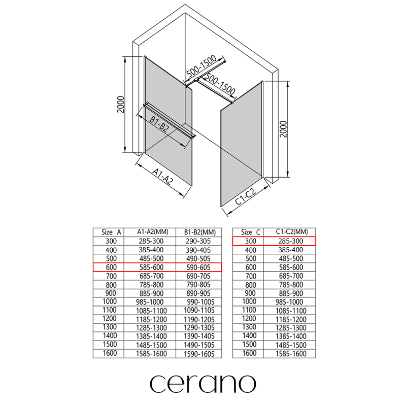 V rámci této série nabízíme širokou škálu rozměrů, abychom uspokojili různé potřeby našich zákazníků. Všechny sprchové kouty, dveře a zástěny značky Cerano jsou plně kompatibilní se sprchovými vaničkami Cerano ve stejných rozměrech, což zajišťuje bezproblémovou instalaci a dokonalé sladění. Sprchový kout lze navíc instalovat flexibilně – buď na odpovídající sprchovou vaničku, nebo přímo na podlahu podle vašich preferencí a možností koupelny.