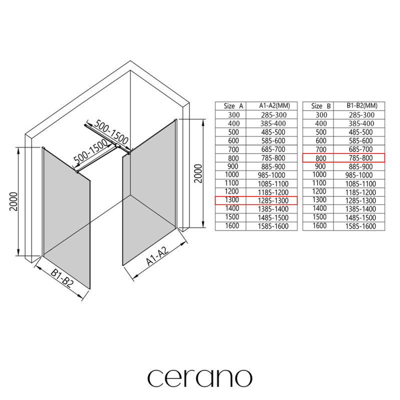 V rámci této série nabízíme širokou škálu rozměrů, abychom uspokojili různé potřeby našich zákazníků. Všechny sprchové kouty, dveře a zástěny značky Cerano jsou plně kompatibilní se sprchovými vaničkami Cerano ve stejných rozměrech, což zajišťuje bezproblémovou instalaci a dokonalé sladění. Sprchový kout lze navíc instalovat flexibilně – buď na odpovídající sprchovou vaničku, nebo přímo na podlahu podle vašich preferencí a možností koupelny.