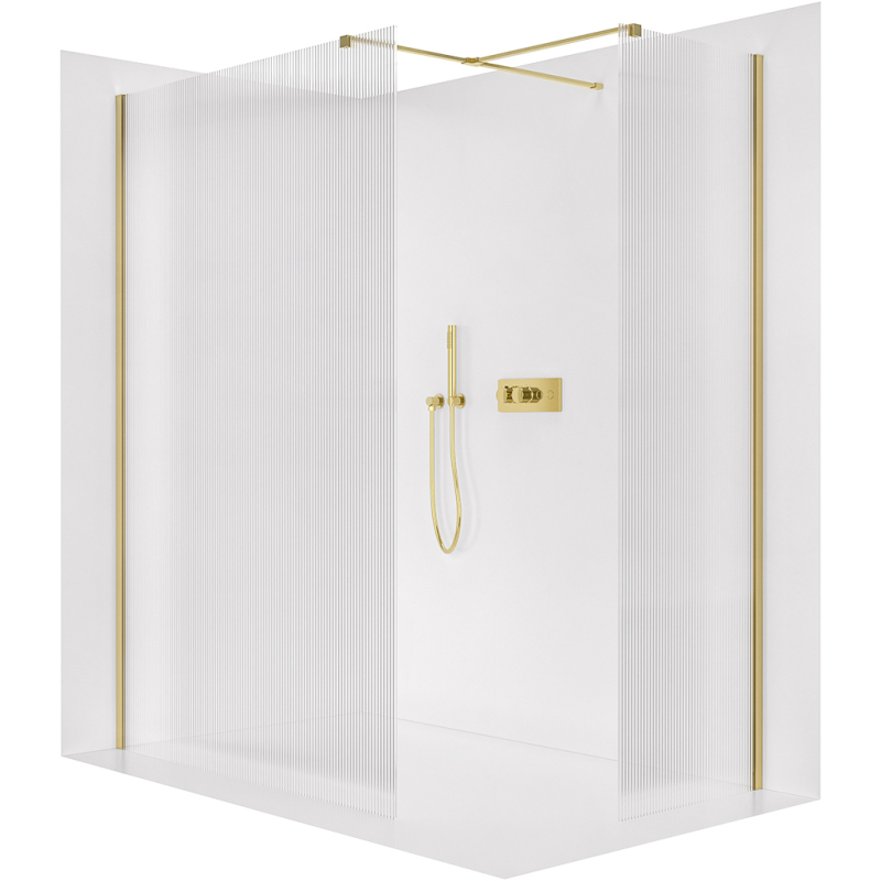 CERANO - Sprchová zástěna Walk-in Onyx T L/P - 8 mm - hranatá vzpěra - zlatá, rýhované sklo - 130x110x200 cm