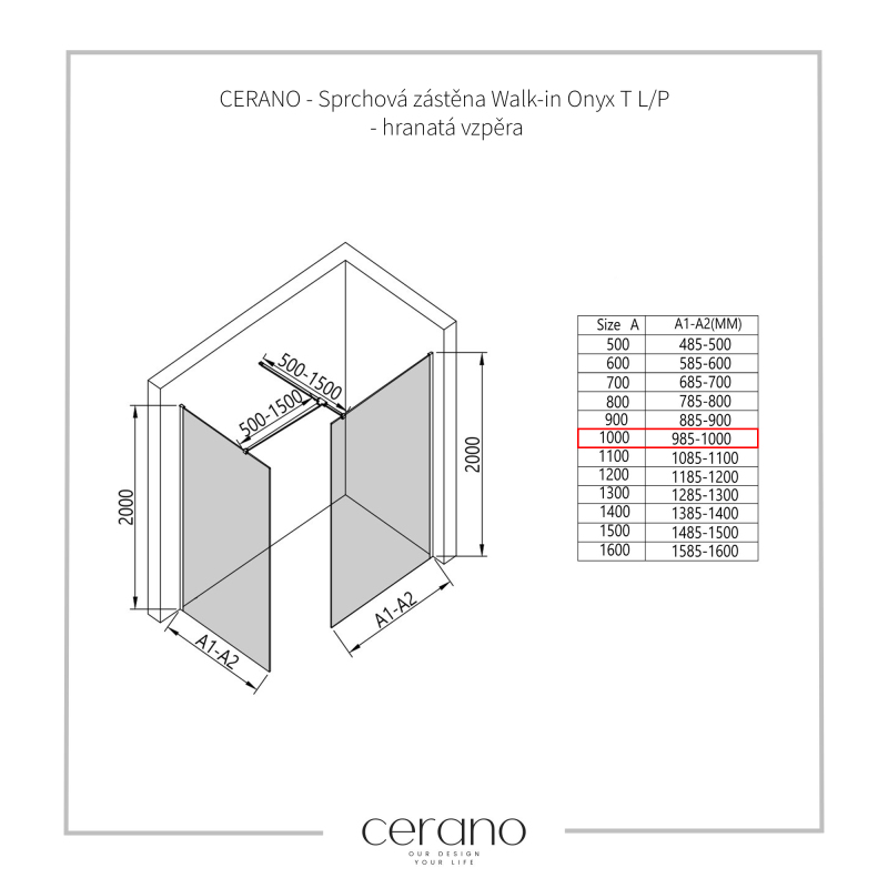 V rámci této série nabízíme širokou škálu rozměrů, abychom uspokojili různé potřeby našich zákazníků. Všechny sprchové kouty, dveře a zástěny značky Cerano jsou plně kompatibilní se sprchovými vaničkami Cerano ve stejných rozměrech, což zajišťuje bezproblémovou instalaci a dokonalé sladění. Sprchový kout lze navíc instalovat flexibilně – buď na odpovídající sprchovou vaničku, nebo přímo na podlahu podle vašich preferencí a možností koupelny.