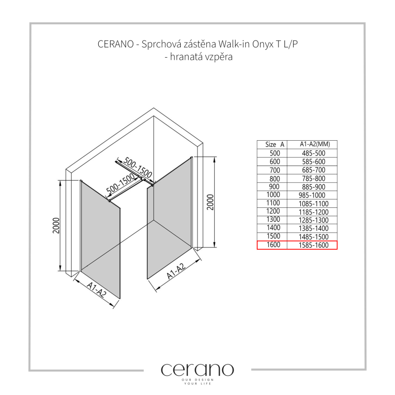 V rámci této série nabízíme širokou škálu rozměrů, abychom uspokojili různé potřeby našich zákazníků. Všechny sprchové kouty, dveře a zástěny značky Cerano jsou plně kompatibilní se sprchovými vaničkami Cerano ve stejných rozměrech, což zajišťuje bezproblémovou instalaci a dokonalé sladění. Sprchový kout lze navíc instalovat flexibilně – buď na odpovídající sprchovou vaničku, nebo přímo na podlahu podle vašich preferencí a možností koupelny.