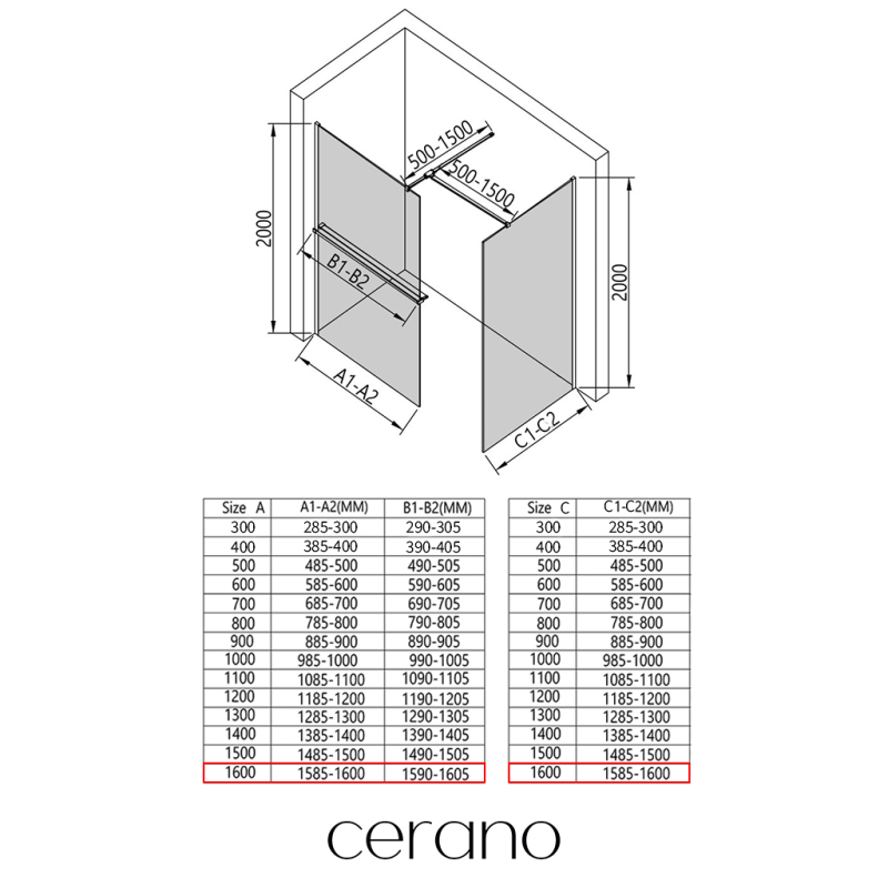 V rámci této série nabízíme širokou škálu rozměrů, abychom uspokojili různé potřeby našich zákazníků. Všechny sprchové kouty, dveře a zástěny značky Cerano jsou plně kompatibilní se sprchovými vaničkami Cerano ve stejných rozměrech, což zajišťuje bezproblémovou instalaci a dokonalé sladění. Sprchový kout lze navíc instalovat flexibilně – buď na odpovídající sprchovou vaničku, nebo přímo na podlahu podle vašich preferencí a možností koupelny.