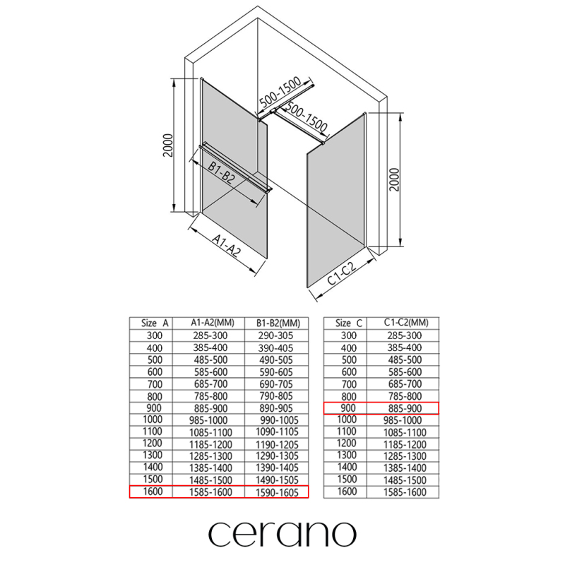 V rámci této série nabízíme širokou škálu rozměrů, abychom uspokojili různé potřeby našich zákazníků. Všechny sprchové kouty, dveře a zástěny značky Cerano jsou plně kompatibilní se sprchovými vaničkami Cerano ve stejných rozměrech, což zajišťuje bezproblémovou instalaci a dokonalé sladění. Sprchový kout lze navíc instalovat flexibilně – buď na odpovídající sprchovou vaničku, nebo přímo na podlahu podle vašich preferencí a možností koupelny.