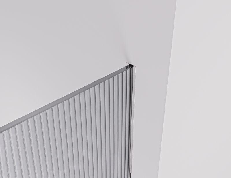 Stěnový profil umožňuje částečné nebo úplné zapuštění do stěny podle preferencí zákazníka. Tento systém nabízí moderní řešení při instalaci sprchové zástěny, zajišťuje čistý vzhled a zároveň umožňuje přesné přizpůsobení tvaru koupelny. Na rozdíl od běžných hliníkových profilů je tento vyroben z kvalitní nerezové oceli, která zajišťuje vyšší odolnost a delší životnost.