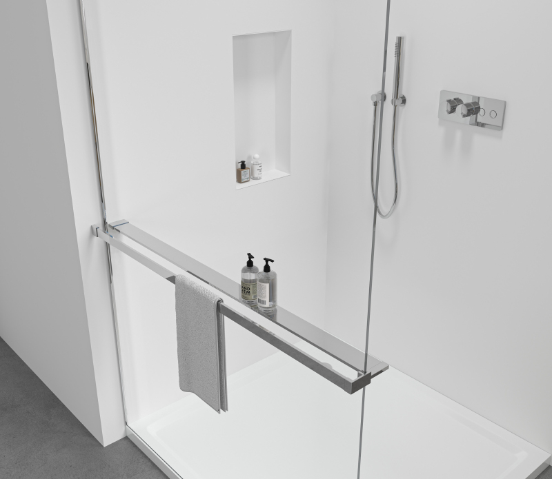 Chytré řešení 2v1 pro sprchové zástěny. Z vnější strany držák na ručníky, zevnitř praktická polička na kosmetiku a drobnosti – vše hned po ruce. Vhodné pro sprchové zástěny s maximální tloušťkou skla 8 mm. Nastavitelná šířka od 30 do 160 cm podle typu zástěny. Úspora místa, moderní vzhled a praktické využití v jednom.