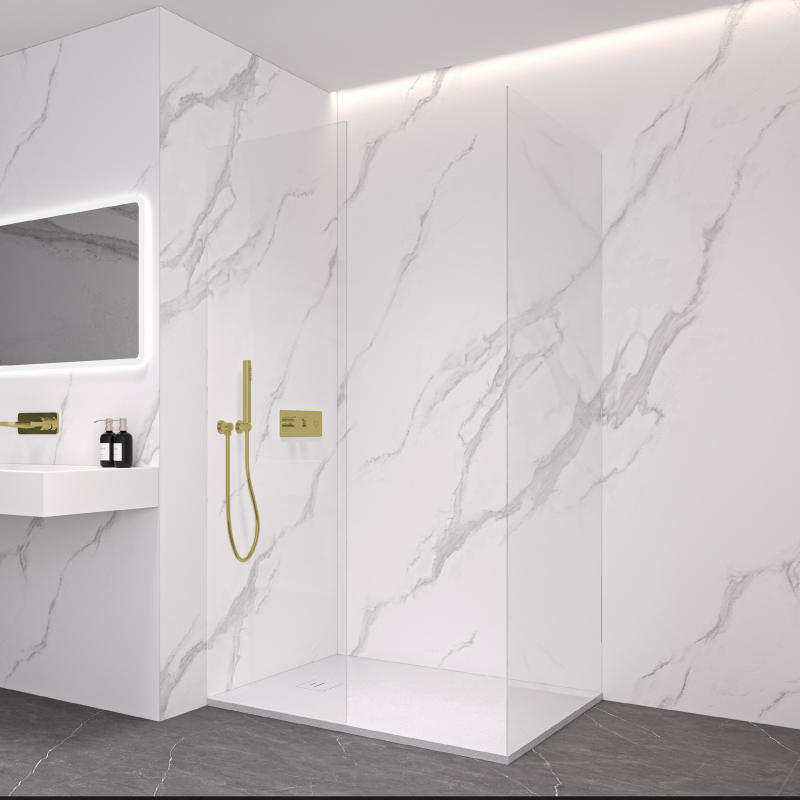 Díky promyšlené konstrukci je sklo uchyceno skrytě do profilů, které lze zapustit zcela nebo částečně ( až 14 mm do obkladů či dlažby). Bez rušivých vzpěr tak vzniká čisté, elegantní řešení, které podtrhne moderní vzhled koupelny a dodá prostoru maximální vizuální lehkost.