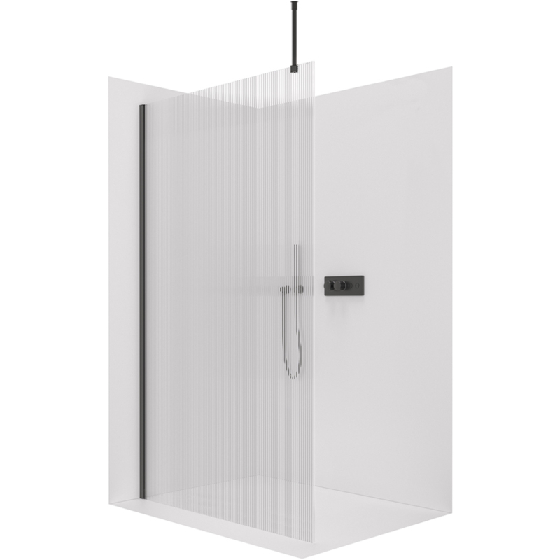 CERANO - Sprchová zástěna Walk-in Onyx Top Round L/P - 8 mm - kulatá vzpěra - černá matná, rýhované sklo - 100x200 cm
