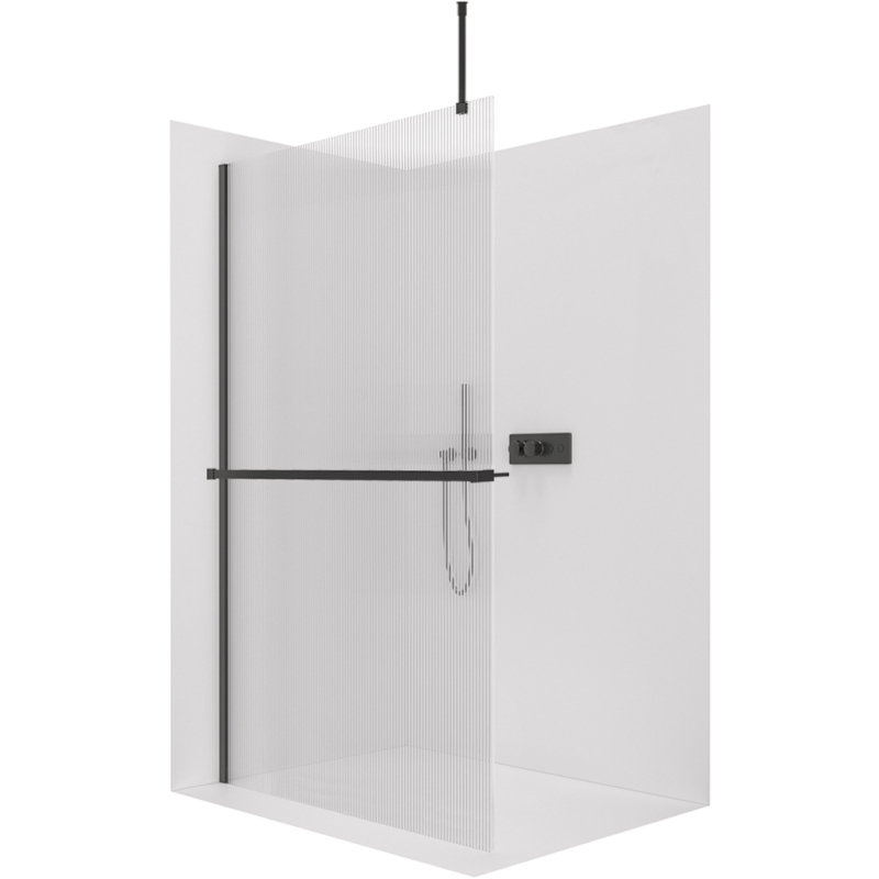 CERANO - Sprchová zástěna Walk-in Onyx Top Round L/P - 8 mm - kulatá vzpěra + polička/držák na ručníky - černá matná, rýhované sklo - 110x200 cm