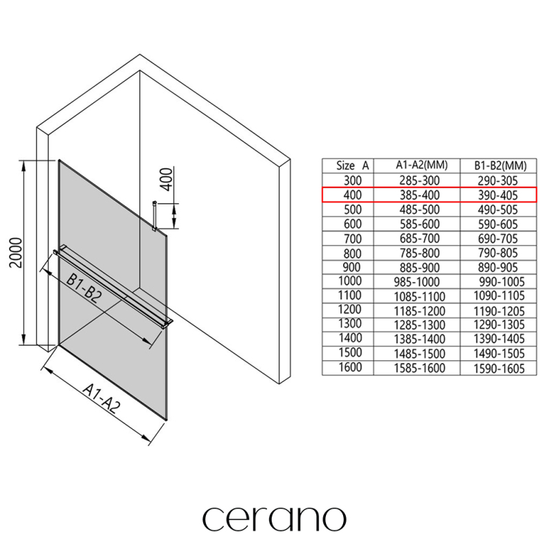 V rámci této série nabízíme širokou škálu rozměrů, abychom uspokojili různé potřeby našich zákazníků. Všechny sprchové kouty, dveře a zástěny značky Cerano jsou plně kompatibilní se sprchovými vaničkami Cerano ve stejných rozměrech, což zajišťuje bezproblémovou instalaci a dokonalé sladění. Sprchový kout lze navíc instalovat flexibilně – buď na odpovídající sprchovou vaničku, nebo přímo na podlahu podle vašich preferencí a možností koupelny.