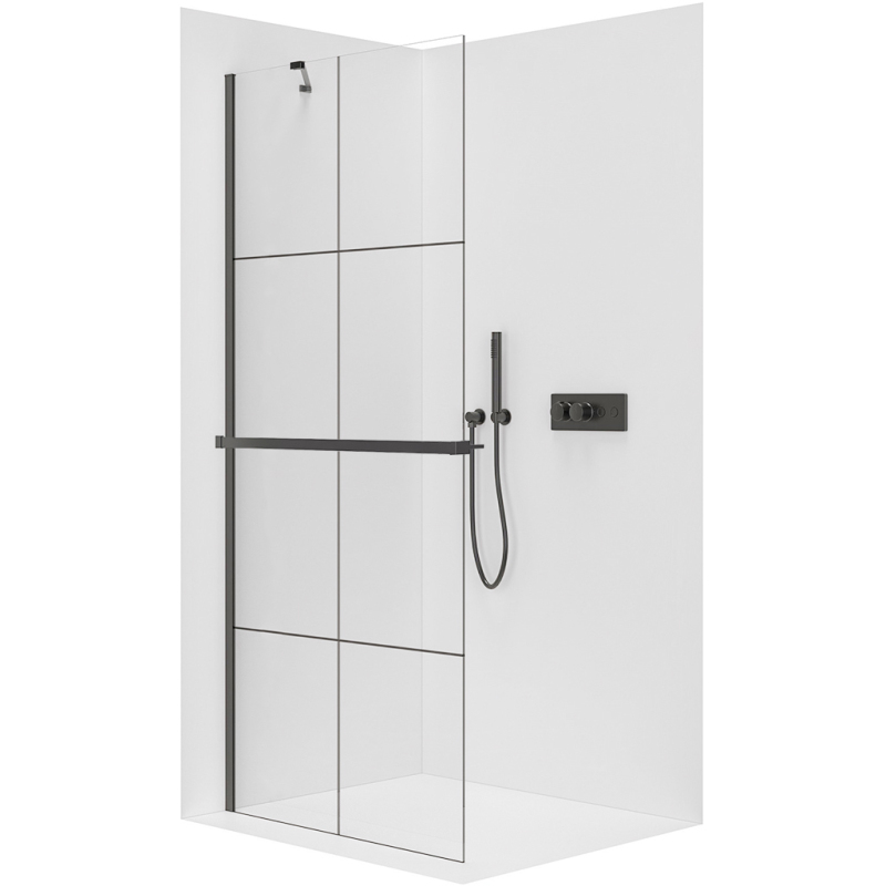 CERANO - Sprchová zástěna Walk-in Onyx Y L/P - 8 mm + polička/držák na ručníky - černá matná, industriální sklo - 110x200 cm