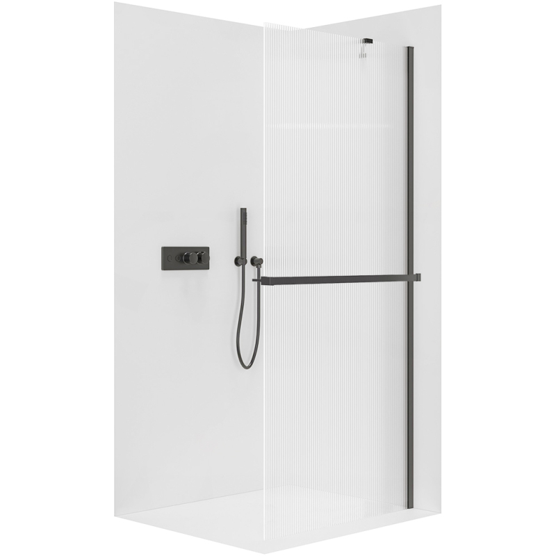 CERANO - Sprchová zástěna Walk-in Onyx Y L/P - 8 mm + polička/držák na ručníky - černá matná, rýhované sklo - 160x200 cm