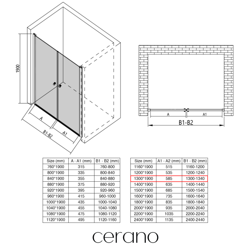 V rámci této série nabízíme širokou škálu rozměrů, abychom uspokojili různé potřeby našich zákazníků. Všechny sprchové kouty, dveře a zástěny značky CERANO jsou plně kompatibilní se sprchovými vaničkami CERANO ve stejných rozměrech, což zajišťuje bezproblémovou instalaci a dokonalé sladění.