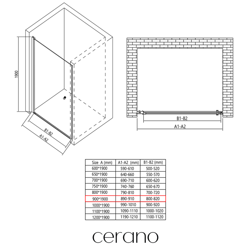 V rámci této série nabízíme širokou škálu rozměrů, abychom uspokojili různé potřeby našich zákazníků. Všechny sprchové kouty, dveře a zástěny značky CERANO jsou plně kompatibilní se sprchovými vaničkami CERANO ve stejných rozměrech, což zajišťuje bezproblémovou instalaci a dokonalé sladění.