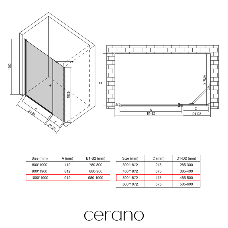 V rámci této série nabízíme širokou škálu rozměrů, abychom uspokojili různé potřeby našich zákazníků. Všechny sprchové kouty, dveře a zástěny značky CERANO jsou plně kompatibilní se sprchovými vaničkami CERANO ve stejných rozměrech, což zajišťuje bezproblémovou instalaci a dokonalé sladění.