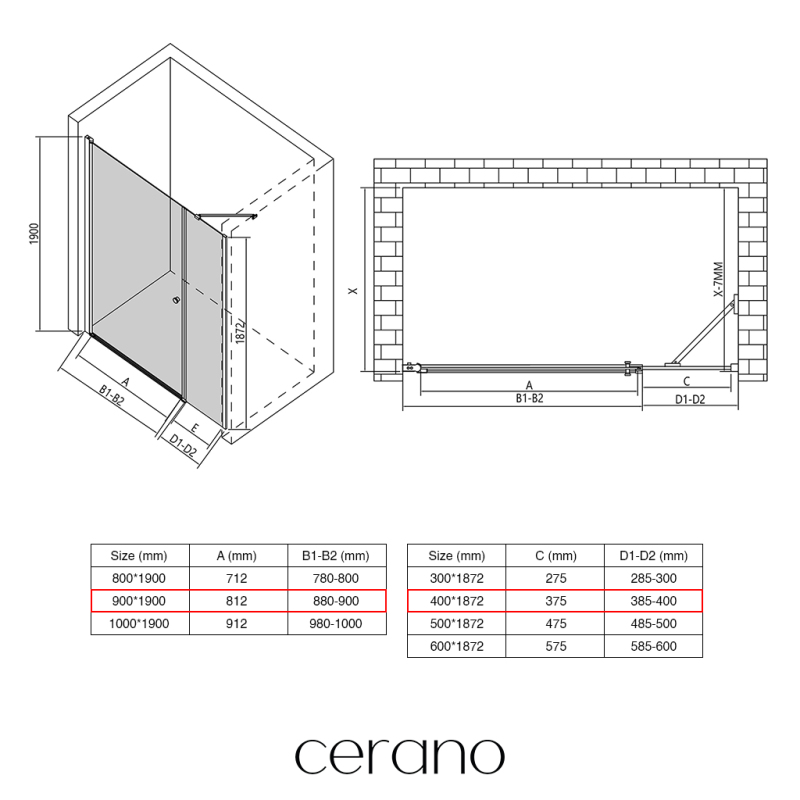V rámci této série nabízíme širokou škálu rozměrů, abychom uspokojili různé potřeby našich zákazníků. Všechny sprchové kouty, dveře a zástěny značky CERANO jsou plně kompatibilní se sprchovými vaničkami CERANO ve stejných rozměrech, což zajišťuje bezproblémovou instalaci a dokonalé sladění.