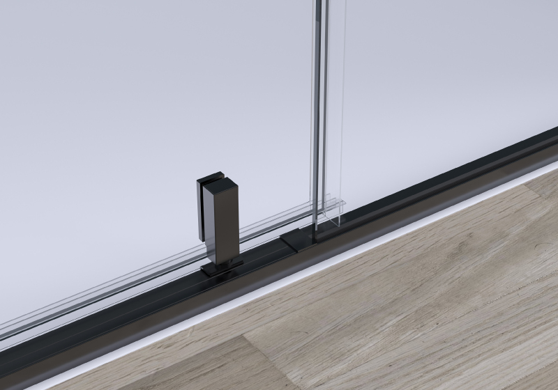 Sklo se při montáži posazuje na pryžové podložky, které slouží k jeho přesnému, stabilnímu a bezpečnému usazení. Následně se spáry utěsní sanitárním transparentním silikonem, který zajistí vodotěsnost a čistý vzhled.
