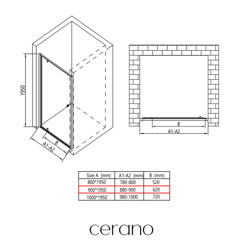 V rámci této série nabízíme širokou škálu rozměrů, abychom uspokojili různé potřeby našich zákazníků. Všechny sprchové kouty, dveře a zástěny značky CERANO jsou plně kompatibilní se sprchovými vaničkami CERANO ve stejných rozměrech, což zajišťuje bezproblémovou instalaci a dokonalé sladění. Sprchový kout lze navíc instalovat flexibilně – buď na odpovídající sprchovou vaničku, nebo přímo na podlahu podle vašich preferencí a možností koupelny.