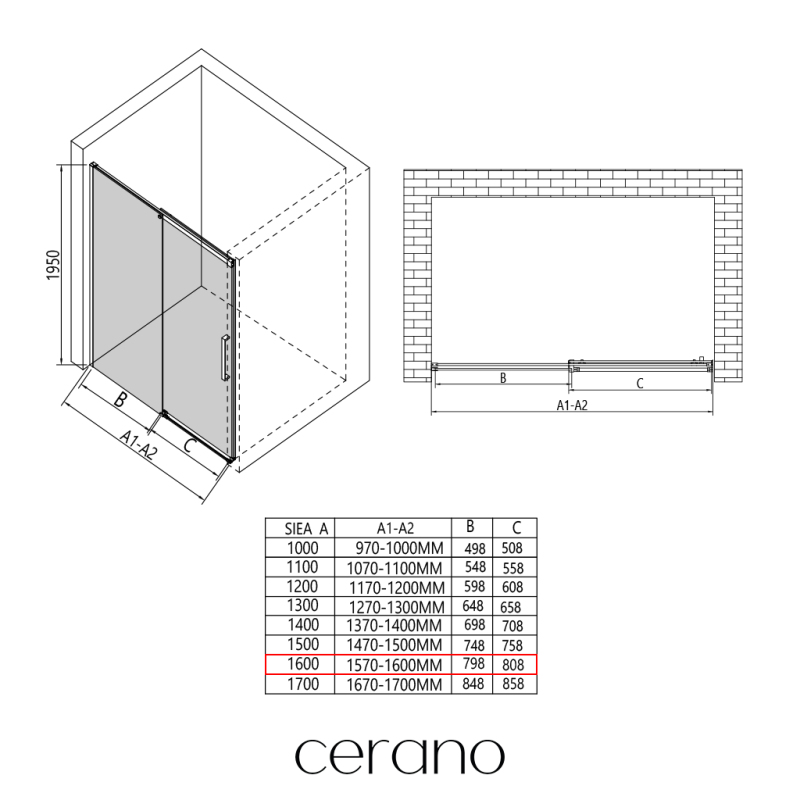 V rámci této série nabízíme širokou škálu rozměrů, abychom uspokojili různé potřeby našich zákazníků. Všechny sprchové kouty, dveře a zástěny značky CERANO jsou plně kompatibilní se sprchovými vaničkami CERANO ve stejných rozměrech, což zajišťuje bezproblémovou instalaci a dokonalé sladění. Sprchový kout lze navíc instalovat flexibilně – buď na odpovídající sprchovou vaničku, nebo přímo na podlahu podle vašich preferencí a možností koupelny.