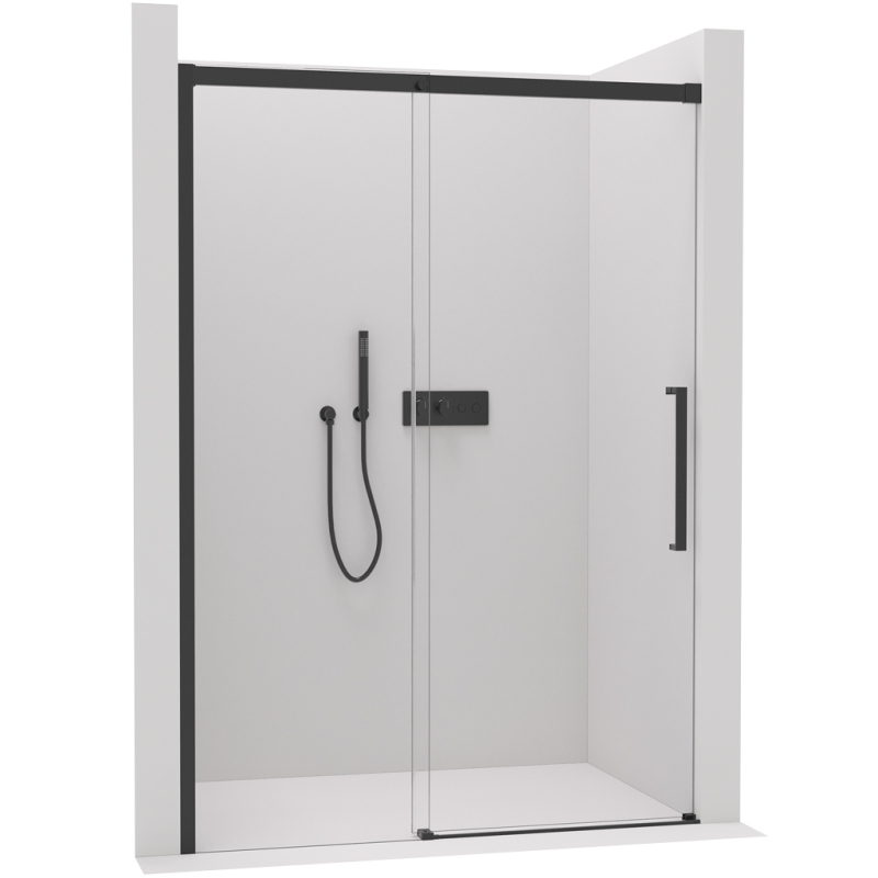CERANO - Sprchové posuvné dveře Lantono L/P - 8 mm - Soft-Close - černá matná, transparentní sklo - 160x195 cm