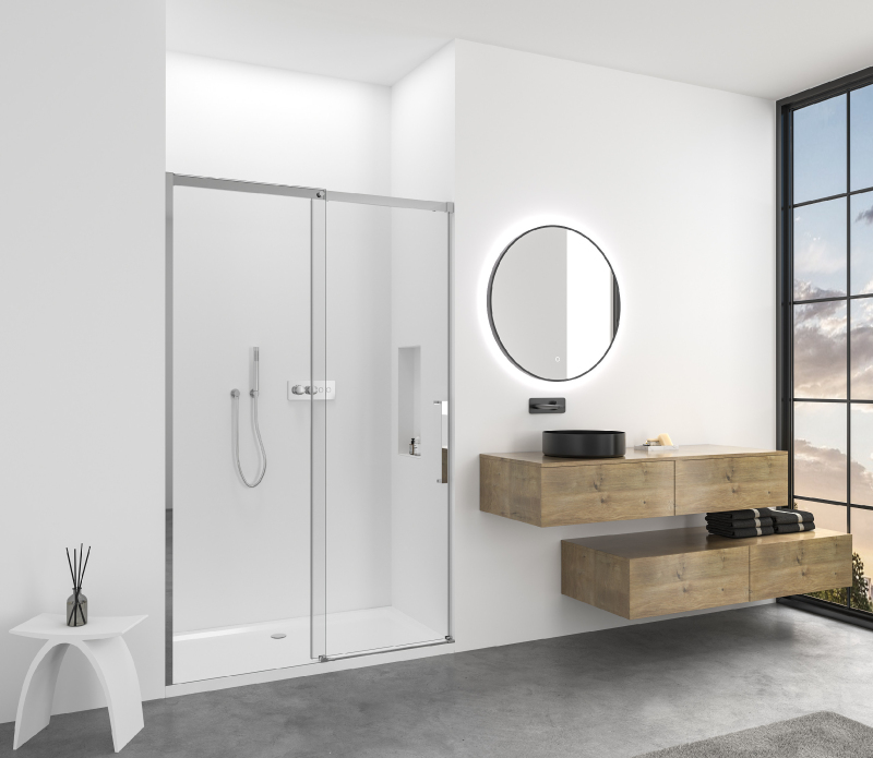 Lze instalovat flexibilně buď na sprchovou vaničku nebo přímo na podlahu. Jeho univerzální design umožňuje přizpůsobení různým prostorům dle individuálních požadavků uživatele.