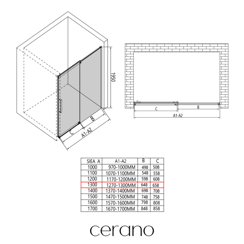V rámci této série nabízíme širokou škálu rozměrů, abychom uspokojili různé potřeby našich zákazníků. Všechny sprchové kouty, dveře a zástěny značky CERANO jsou plně kompatibilní se sprchovými vaničkami CERANO ve stejných rozměrech, což zajišťuje bezproblémovou instalaci a dokonalé sladění. Sprchový kout lze navíc instalovat flexibilně – buď na odpovídající sprchovou vaničku, nebo přímo na podlahu podle vašich preferencí a možností koupelny.