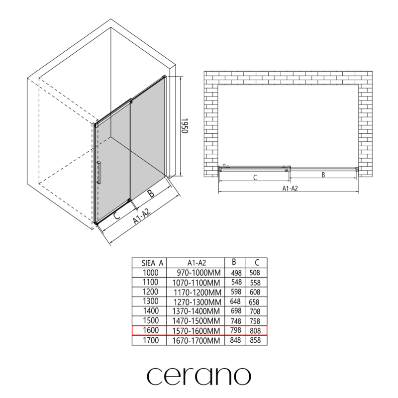V rámci této série nabízíme širokou škálu rozměrů, abychom uspokojili různé potřeby našich zákazníků. Všechny sprchové kouty, dveře a zástěny značky CERANO jsou plně kompatibilní se sprchovými vaničkami CERANO ve stejných rozměrech, což zajišťuje bezproblémovou instalaci a dokonalé sladění. Sprchový kout lze navíc instalovat flexibilně – buď na odpovídající sprchovou vaničku, nebo přímo na podlahu podle vašich preferencí a možností koupelny.