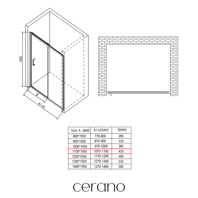 CERANO - Sprchové posuvné dveře Orlano L/P - 5 mm - chrom, transparentní sklo - 110x195 cm