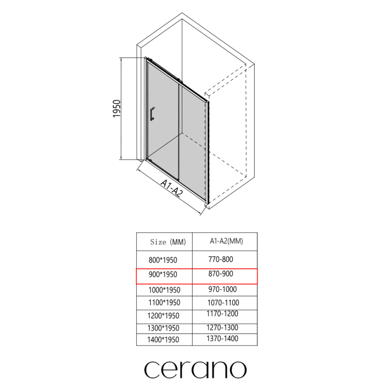 CERANO - Sprchové posuvné dveře Orlano L/P - 5 mm - chrom, transparentní sklo - 90x195 cm