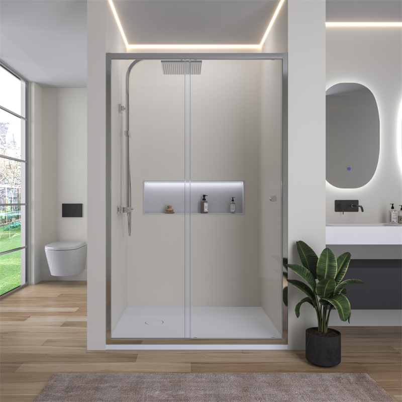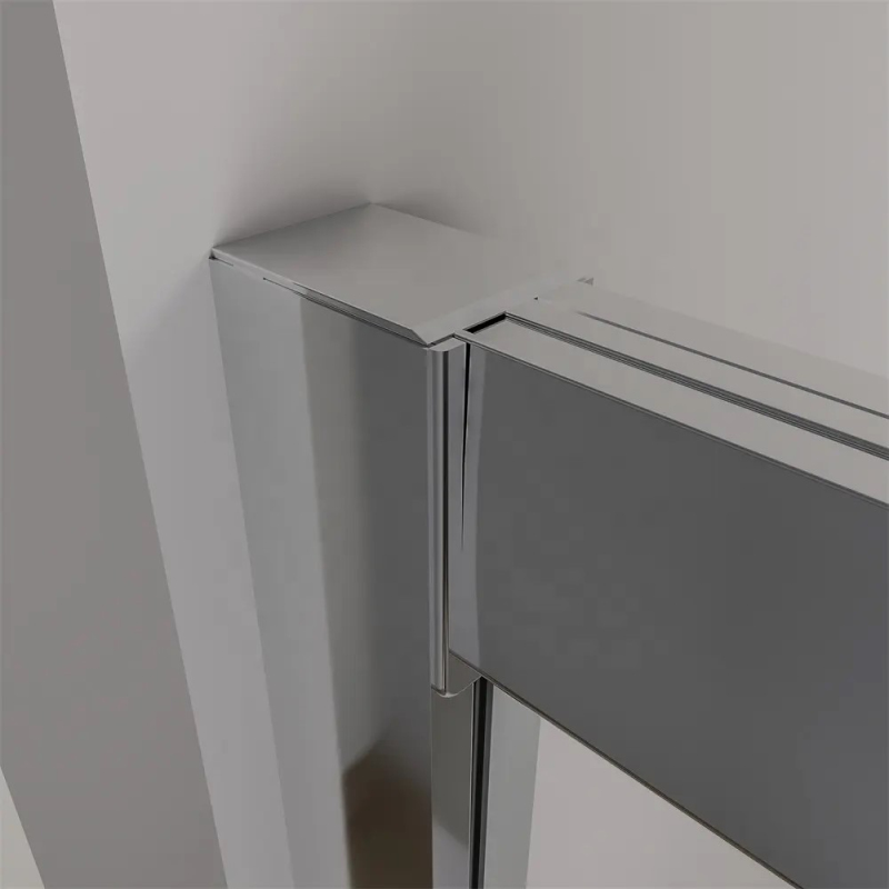 Díky nastavitelnému stěnovému profilu s rozsahem až 40 mm snadno přizpůsobíte sprchové dveře i v případě menších nerovností stěn nebo odchylek ve stavebním otvoru. Tento chytrý systém usnadňuje instalaci a zajišťuje dokonalé dosednutí dveří. Možnost nastavení platí pouze pro dveře – pevná zástěna se montuje v pevném rozměru.