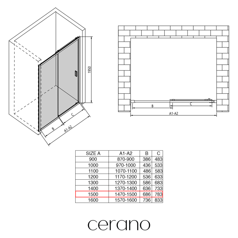 V rámci této série nabízíme širokou škálu rozměrů, abychom uspokojili různé potřeby našich zákazníků. Všechny sprchové kouty, dveře a zástěny značky CERANO jsou plně kompatibilní se sprchovými vaničkami CERANO ve stejných rozměrech, což zajišťuje bezproblémovou instalaci a dokonalé sladění. Sprchový kout lze navíc instalovat flexibilně – buď na odpovídající sprchovou vaničku, nebo přímo na podlahu podle vašich preferencí a možností koupelny.