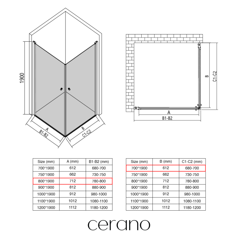 V rámci této série nabízíme širokou škálu rozměrů, abychom uspokojili různé potřeby našich zákazníků. Všechny sprchové kouty, dveře a zástěny značky CERANO jsou plně kompatibilní se sprchovými vaničkami CERANO ve stejných rozměrech, což zajišťuje bezproblémovou instalaci a dokonalé sladění.