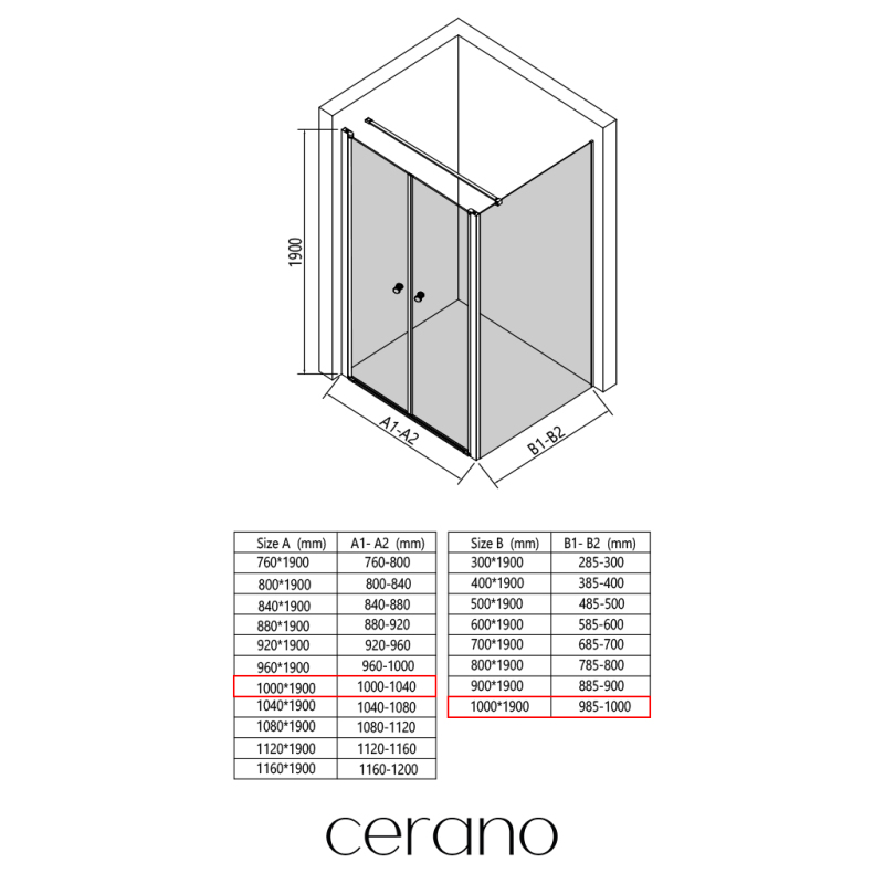 V rámci této série nabízíme širokou škálu rozměrů, abychom uspokojili různé potřeby našich zákazníků. Všechny sprchové kouty, dveře a zástěny značky CERANO jsou plně kompatibilní se sprchovými vaničkami CERANO ve stejných rozměrech, což zajišťuje bezproblémovou instalaci a dokonalé sladění.