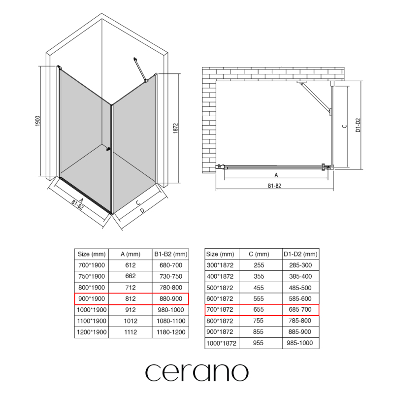 V rámci této série nabízíme širokou škálu rozměrů, abychom uspokojili různé potřeby našich zákazníků. Všechny sprchové kouty, dveře a zástěny značky CERANO jsou plně kompatibilní se sprchovými vaničkami CERANO ve stejných rozměrech, což zajišťuje bezproblémovou instalaci a dokonalé sladění.