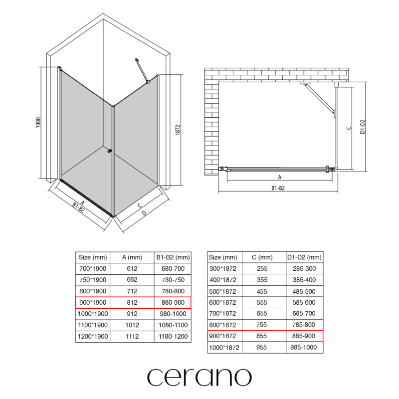 V rámci této série nabízíme širokou škálu rozměrů, abychom uspokojili různé potřeby našich zákazníků. Všechny sprchové kouty, dveře a zástěny značky CERANO jsou plně kompatibilní se sprchovými vaničkami CERANO ve stejných rozměrech, což zajišťuje bezproblémovou instalaci a dokonalé sladění.