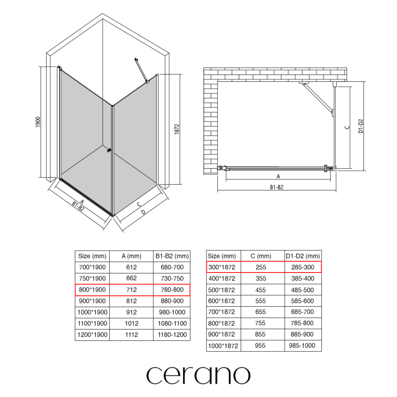 V rámci této série nabízíme širokou škálu rozměrů, abychom uspokojili různé potřeby našich zákazníků. Všechny sprchové kouty, dveře a zástěny značky CERANO jsou plně kompatibilní se sprchovými vaničkami CERANO ve stejných rozměrech, což zajišťuje bezproblémovou instalaci a dokonalé sladění.
