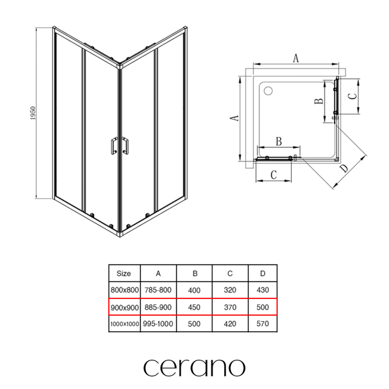 CERANO - Sprchový kout Fabrizio L/P - 5 mm - černá matná, transparentní sklo - 90x90x195 cm - posuvný