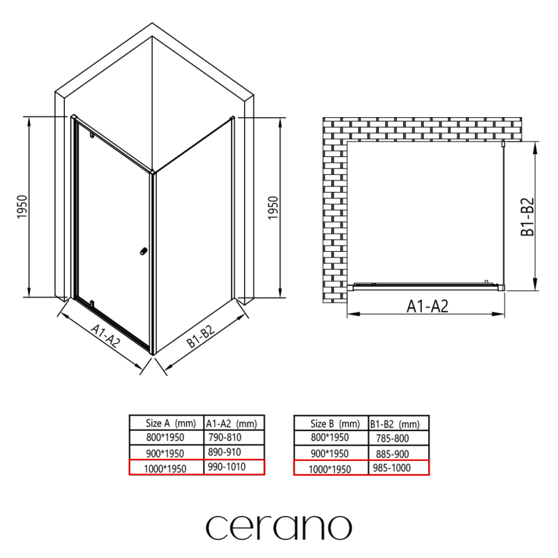 V rámci této série nabízíme širokou škálu rozměrů, abychom uspokojili různé potřeby našich zákazníků. Všechny sprchové kouty, dveře a zástěny značky CERANO jsou plně kompatibilní se sprchovými vaničkami CERANO ve stejných rozměrech, což zajišťuje bezproblémovou instalaci a dokonalé sladění. Sprchový kout lze navíc instalovat flexibilně – buď na odpovídající sprchovou vaničku, nebo přímo na podlahu podle vašich preferencí a možností koupelny.
