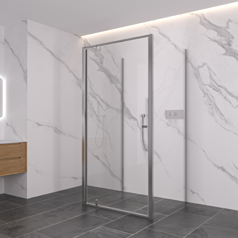 Dveře sprchového koutu jsou umístěny na otočných čepech (pivotech) a osa otáčení je posunuta od okraje dveří ven, což umožňuje snadnější otevírání. Toto řešení vyžaduje určitý prostor pro plné otevření dveří, toto je třeba zvážit při plánování. Pivotové dveře jsou dobrou volbou i pro větší koupelny, díky této konstrukci lze použít i větší rozměry dveří.