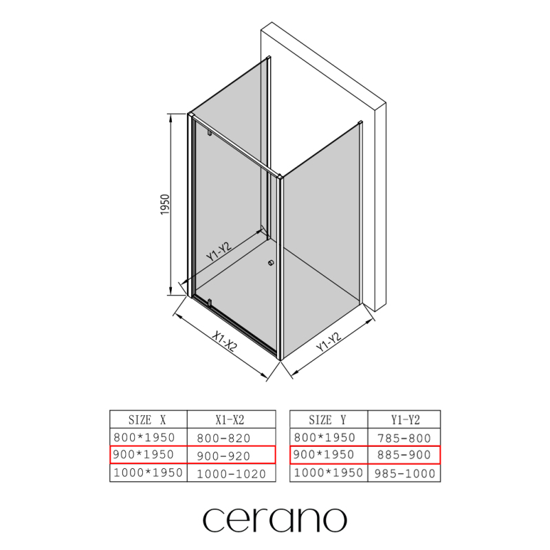 V rámci této série nabízíme širokou škálu rozměrů, abychom uspokojili různé potřeby našich zákazníků. Většina sprchových koutů, dveří a zástěn značky CERANO je navržena tak, aby byla kompatibilní se sprchovými vaničkami CERANO ve stejných rozměrech, což zajišťuje bezproblémovou instalaci a dokonalé sladění.