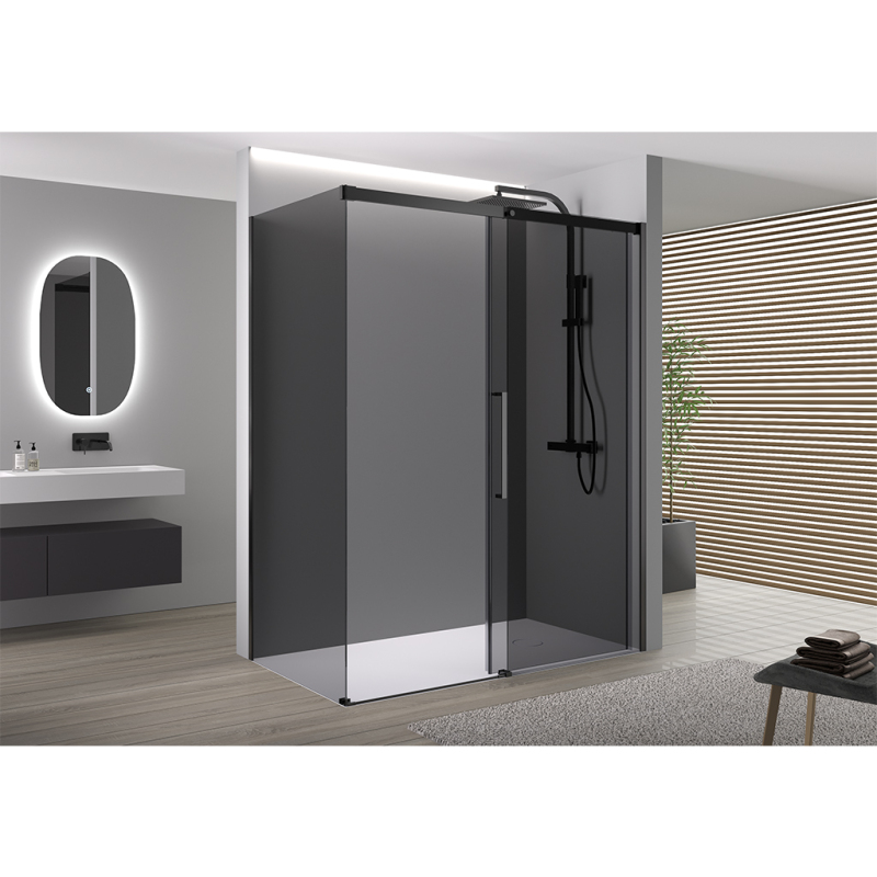 expedice do 7 dnůCERANO - Sprchový kout Lantono L/P - 8 mm - Soft-Close - černá matná, grafitové sklo - 160x80x195 cm - posuvný