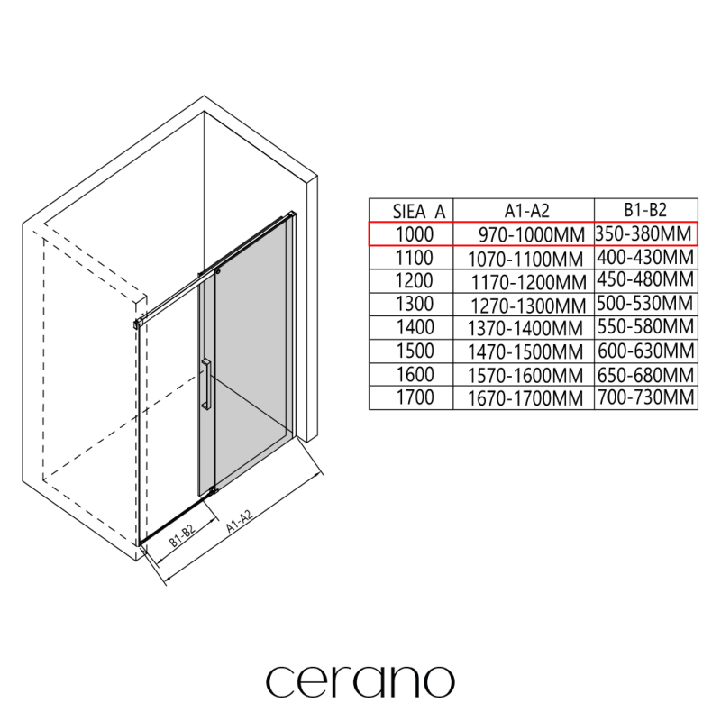 V rámci této série nabízíme širokou škálu rozměrů, abychom uspokojili různé potřeby našich zákazníků. Všechny sprchové kouty, dveře a zástěny značky CERANO jsou plně kompatibilní se sprchovými vaničkami CERANO ve stejných rozměrech, což zajišťuje bezproblémovou instalaci a dokonalé sladění. Sprchový kout lze navíc instalovat flexibilně – buď na odpovídající sprchovou vaničku, nebo přímo na podlahu podle vašich preferencí a možností koupelny.