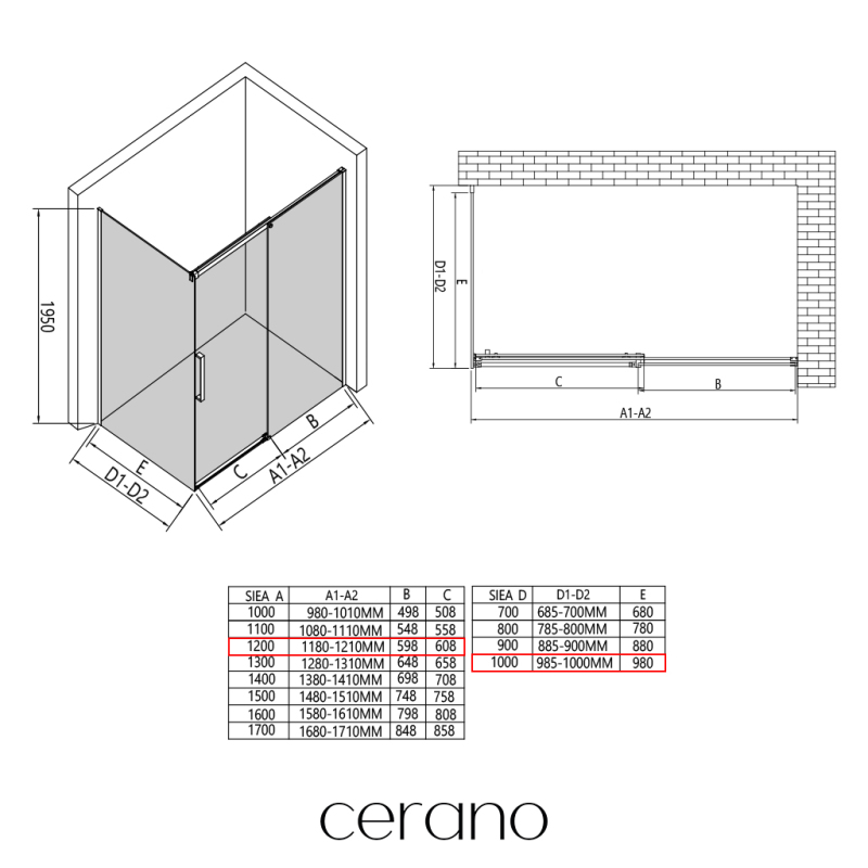 V rámci této série nabízíme širokou škálu rozměrů, abychom uspokojili různé potřeby našich zákazníků. Všechny sprchové kouty, dveře a zástěny značky CERANO jsou plně kompatibilní se sprchovými vaničkami CERANO ve stejných rozměrech, což zajišťuje bezproblémovou instalaci a dokonalé sladění. Sprchový kout lze navíc instalovat flexibilně – buď na odpovídající sprchovou vaničku, nebo přímo na podlahu podle vašich preferencí a možností koupelny.