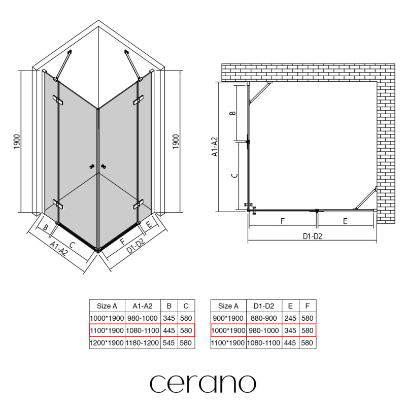 V rámci této série nabízíme širokou škálu rozměrů, abychom uspokojili různé potřeby našich zákazníků. Všechny sprchové kouty, dveře a zástěny značky CERANO jsou plně kompatibilní se sprchovými vaničkami CERANO ve stejných rozměrech, což zajišťuje bezproblémovou instalaci a dokonalé sladění. Sprchový kout lze navíc instalovat flexibilně – buď na odpovídající sprchovou vaničku, nebo přímo na podlahu podle vašich preferencí a možností koupelny.