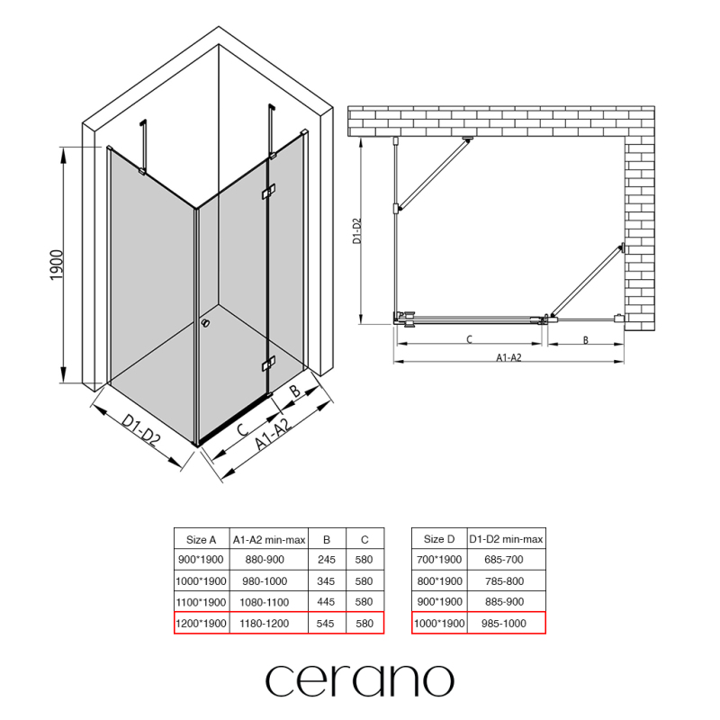 V rámci této série nabízíme širokou škálu rozměrů, abychom uspokojili různé potřeby našich zákazníků. Všechny sprchové kouty, dveře a zástěny značky CERANO jsou plně kompatibilní se sprchovými vaničkami CERANO ve stejných rozměrech, což zajišťuje bezproblémovou instalaci a dokonalé sladění. Sprchový kout lze navíc instalovat flexibilně – buď na odpovídající sprchovou vaničku, nebo přímo na podlahu podle vašich preferencí a možností koupelny.