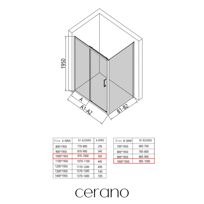 expedice do 7 dnůCERANO - Sprchový kout Varone LINE L/P - 6 mm - černá matná, transparentní sklo - 100x90x195 cm - posuvný