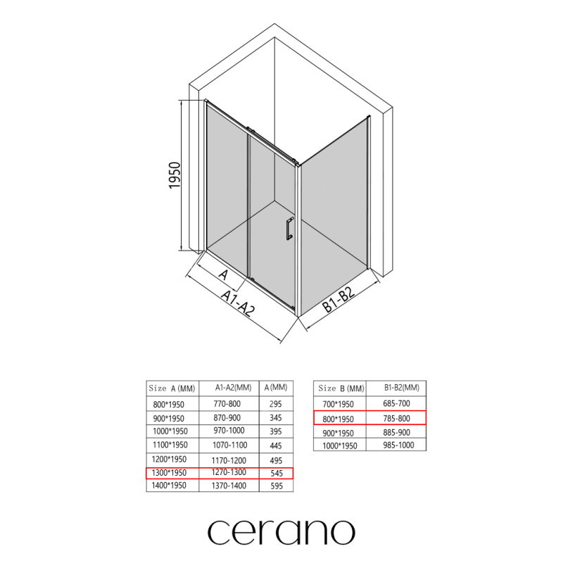 expedice do 7 dnůCERANO - Sprchový kout Varone LINE L/P - 6 mm - chrom, transparentní sklo - 130x80x195 cm - posuvný