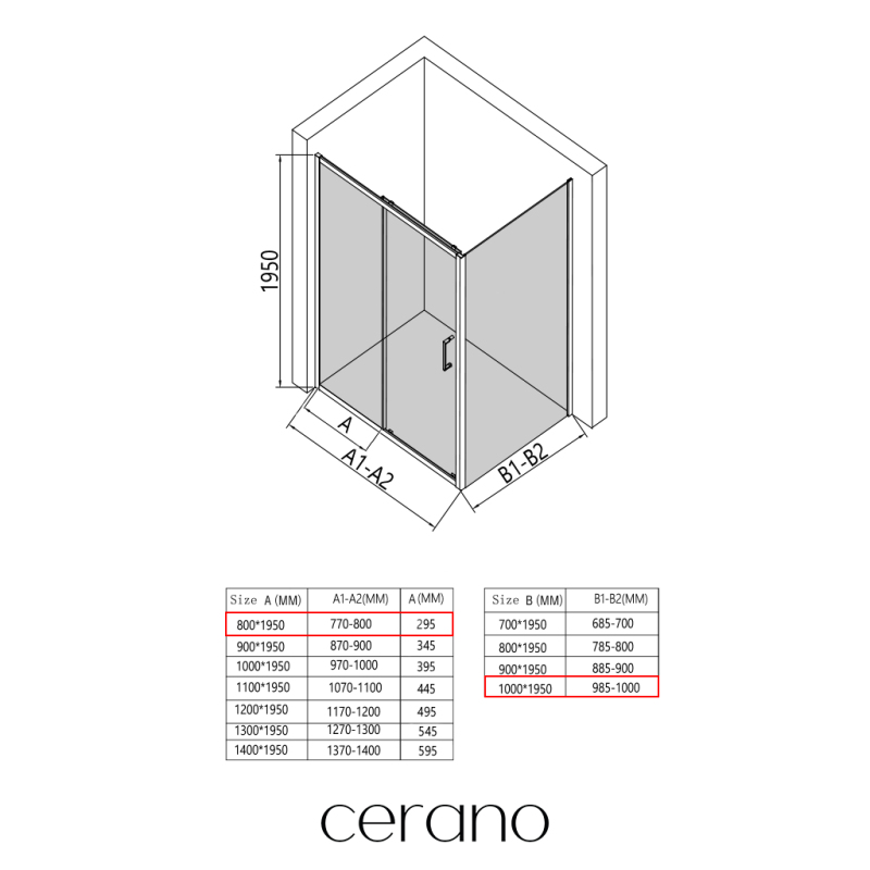 CERANO - Sprchový kout Orlano L/P - 5 mm - chrom, transparentní sklo - 80x100x195 cm - posuvný