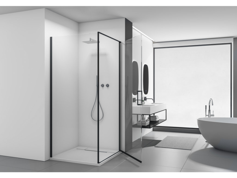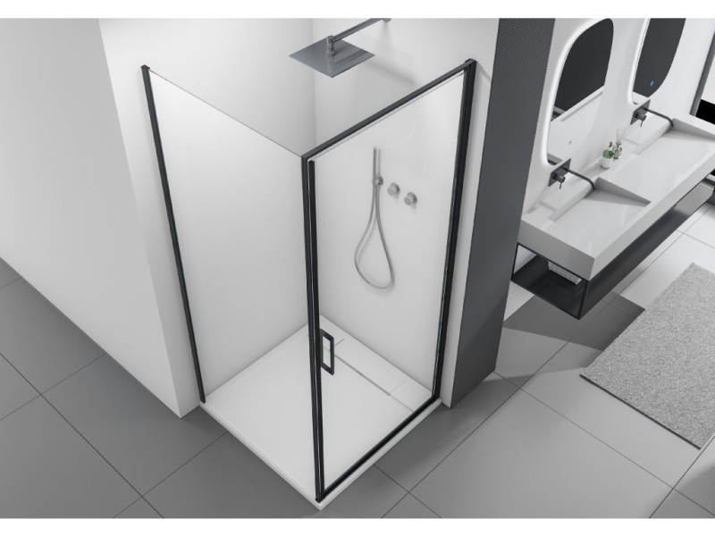 Dveře využívají křídlový systém otevírání, který je ideální pro moderní koupelny s dostatkem prostoru pro otevření dveřního křídla. Dveře jsou zavěšeny na zapuštěných pantech se systémem pneumatického přizvednutí.